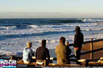 KwaZulu- Natal, Ballito – Surfers woke to a spectacle of powerful 2.5 – 3 meter (8-10ft) surf pounding the Ballito coastline forcing organizers to look at the possibility of moving the Women’s 5 Star ASP World Qualifying Series Mr Price Pro Ballito to Tinley Manor, twenty minutes North of Ballito.