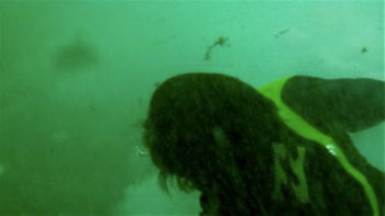 Here are a couple of frame grabs from that session when I kick out on a wave, this is what the camera picked up under water…….