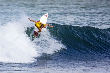 It was a hard-fought final between Gilmore and Blanchard, with little separating the two who were equally as impressive on their backhand attack on the lefts. In the end, just 1.12 points was the difference. Blanchard with a two-wave total of 14.16, and Gilmore ($1,750) with 13.04. Third place in the 30-minute, four-woman final went to Sofia Mulanovich (Peru, $1,500), and fourth was Australian Rebecca Woods ($1,250).