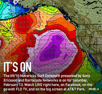 It’s official, the 2009/2010 Maverick’s Surf Contest has received the green light to run this upcoming Saturday, Feb. 13. After what’s definitely been a big-wave season to remember, there’s yet another northwest swell looming on the horizon, and it’s looking prime for Maverick’s.