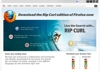 Co-promotion of the ‘Rip Curl edition of Firefox’ by Mozilla and Rip Curl is currently underway via both company’s respective newsletters, Facebook & Twitter accounts.