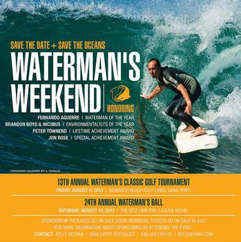 The 24th Annual Waterman’s Weekend will be held August 9-10, 2013, at The Ritz-Carlton Laguna Niguel, Calif. The weekend begins Friday, August 9, at the Monarch Beach Golf Links with the Waterman’s Classic Golf Tournament, and culminates on Saturday, August 10, with the Waterman’s Ball and Auction.