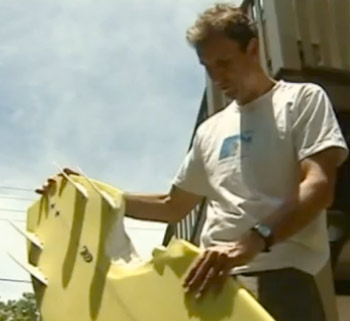 Mr King said he was about to stand up to catch a wave when he felt the shark brush against his leg before it took a mouthful of polyurethane and disappeared.