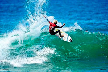 The Santa Cruz native’s lightning-quick forehand approach and impeccable wave ion on the racy lefthanders at 56th street played a critical role in his impressive showing. ”I think it definitely helps to be on your forehand out here on these lefts,” Young said. “It’s pretty fast, but in the end you’ve really just got to get the best waves out there. It’s whoever gets the best waves.”