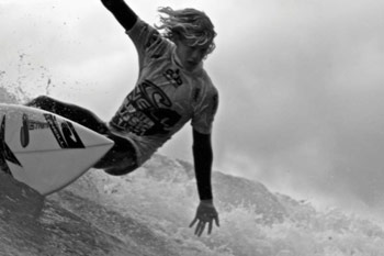 “It is pretty wild and cold,” he said. “It’s like gale force winds out there. I got on a few waves and couldn’t even move for the wind – but there are some fun rides out there.”