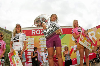 BIARRITZ, France (Tuesday, July 14, 2009) – Jennifer Smith (California, USA), 23, won the Roxy Jam in Biarritz today to claim the second ASP Women’s World Longboard title of her brilliant career after defeating fellow finalist and outsider Coline Menard (Reunion Island, FRA), 21, in the final exchange of the 2009 edition. Smith, who dominated the final bout from the beginning until the end, confirmed her stellar Semifinal run where she managed to score a 9.25 point ride, the highest wave score of the event, defeating Menard confidently.