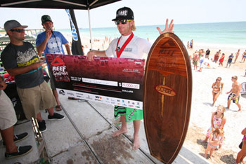 Aaron Cormican, of New Smyrna Beach, Fla., outlasted his peers Sunday at Wrightsville Beach to win the pro division of the Reef/Sweetwater Pro-Am for the second time in the competition’s five-year history. Cormican won the event in 2006, and beat out his good friend Jeremy Johnston, the 2008 champion, also from New Smyrna, in the tournament final.