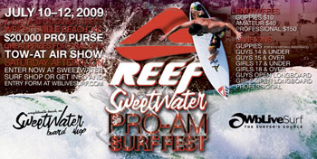 The 5th Annual Reef/Sweetwater Pro-Am Surf Fest will be back in Wrightsville Beach, North Carolina on July 10-12th at Oceanic Street. This year’s event features a $20,000 pro prize purse. This event is one of the largest surfing contests on the East Coast and attracts surfers from around the world.
